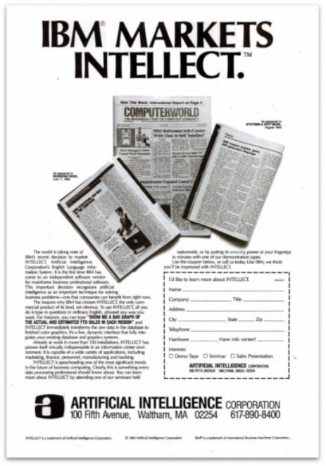 Following from the golden years of Artificial Intelligence in the 1950’s, the boom hit in the 1980’s – unsurprisingly. The rise of expert systems, A.I. software, hardware, systems such as XCON and Intellect or languages such as OPS5 were all linked to specialised companies like Symbolics and IntelliCorp. But eventually, Artificial Intelligence itself was considered a huge failure, if you can believe it.