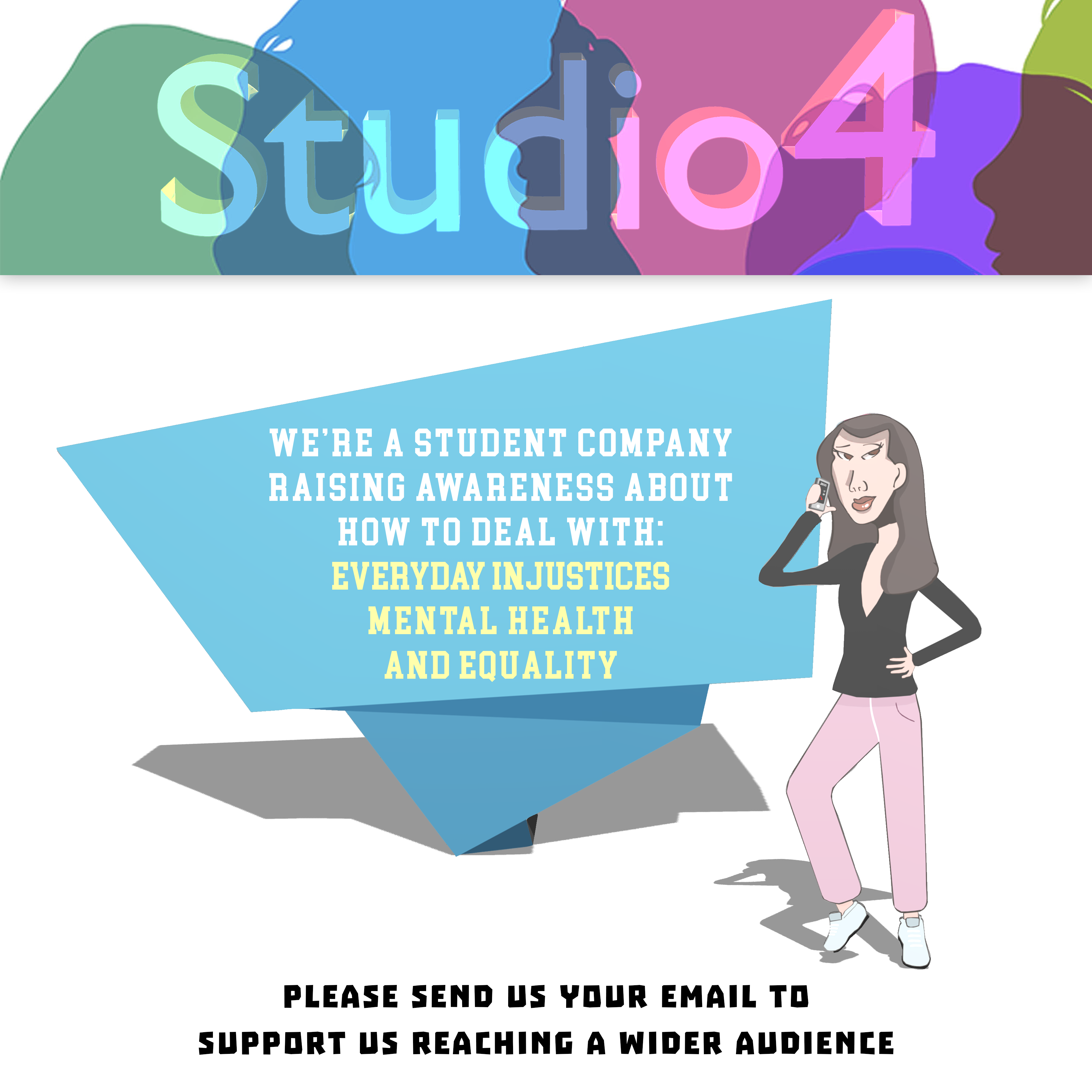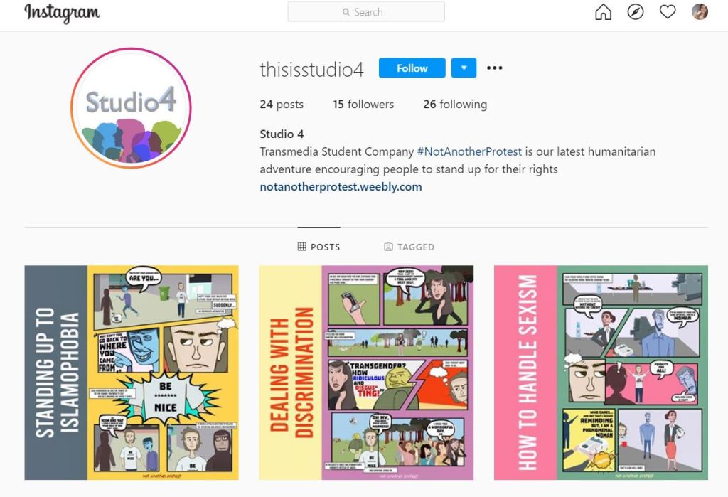 Work generated for the undergraduate module Transmedia, taught at the University of Greenwich. Studio4 is our student company that uses Transmedia to raise awareness towards humanitarian needs such as inequality, discrimination, economic injustice and mental wellbeing.